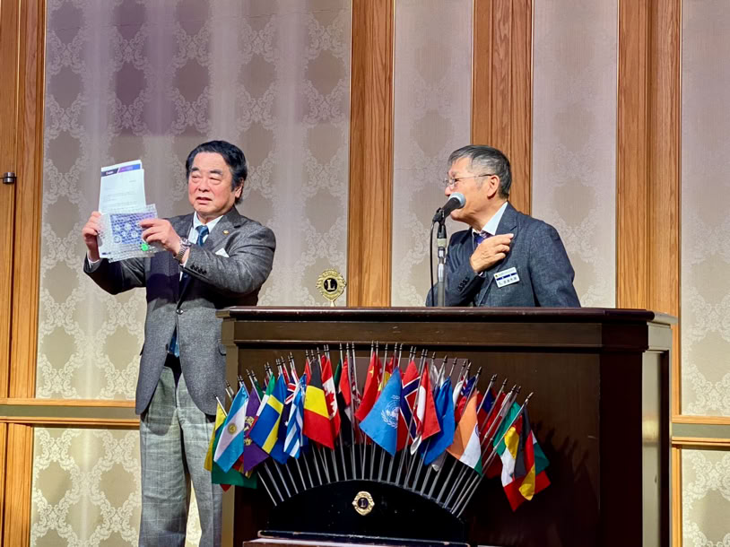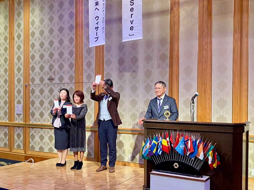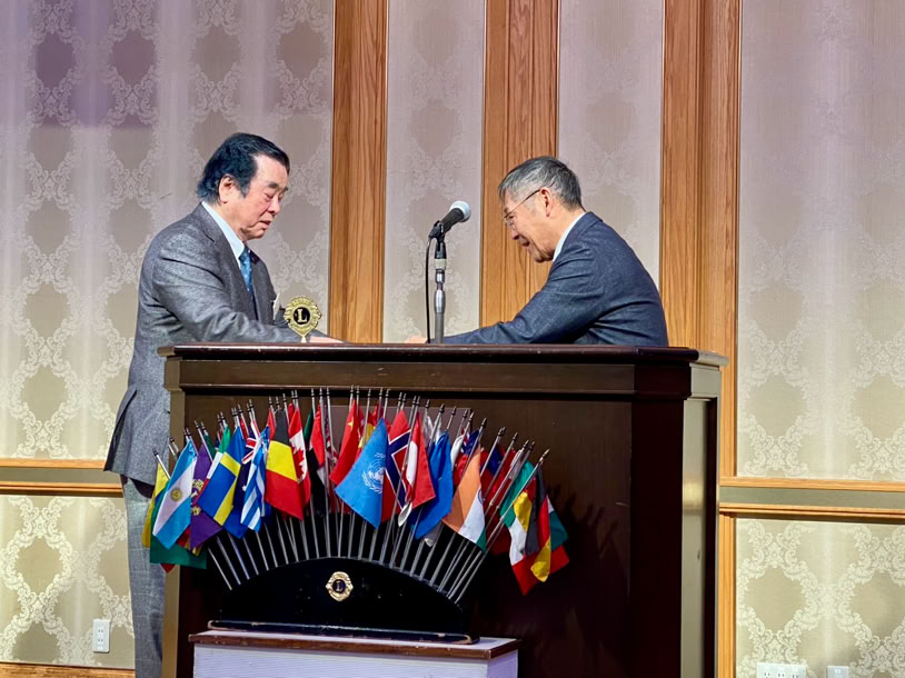 また、渡邉会長より、澤田会員に会員アワードとMJFが贈呈(ライオンズ・サポーターピン(Level 3-Gold) )されました。