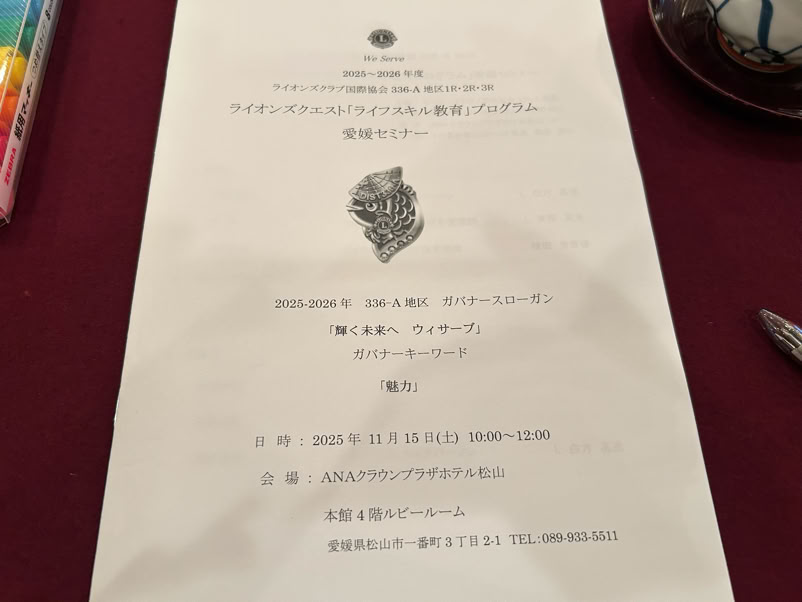 ライオンズクエスト「ライフスキル教育」プログラム愛媛セミナーに地区委員の鶴居会員が担当、渡邉会長、丸山幹事が参加しました。